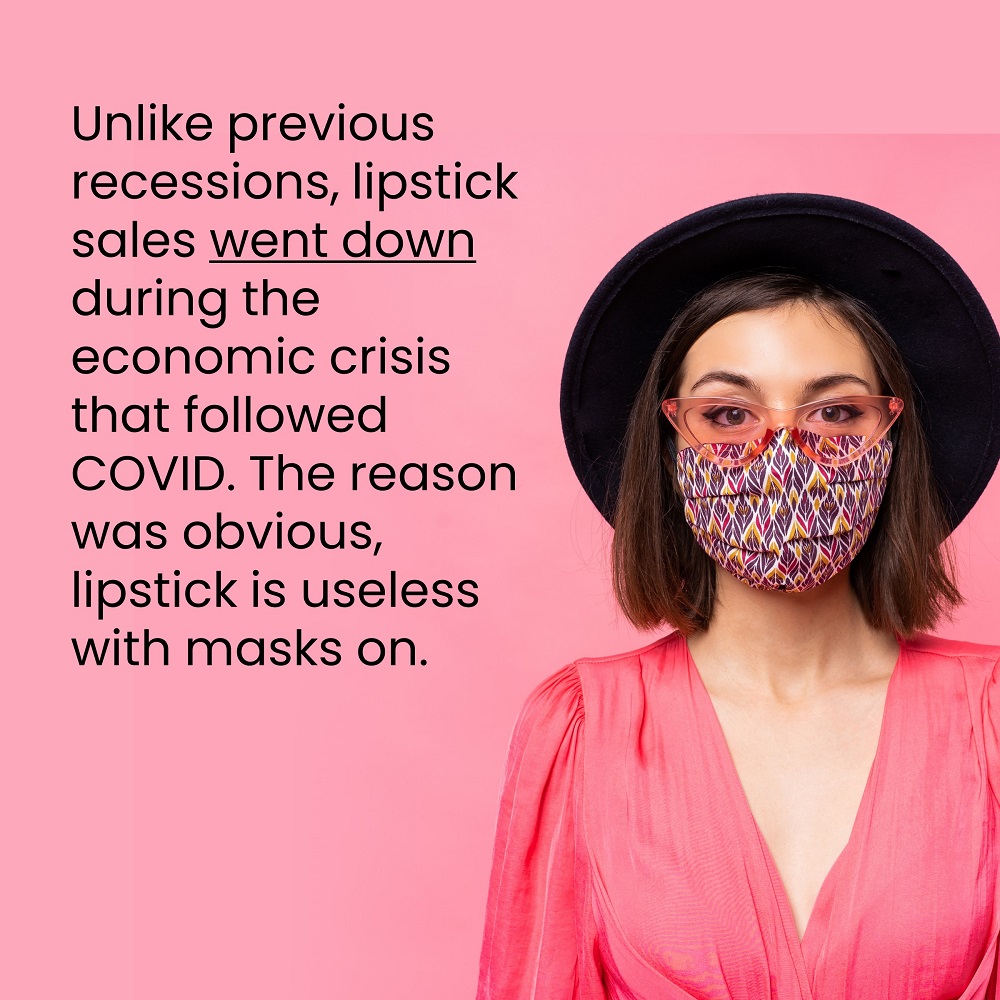 No, it didn't. Unlike other recessions in history, lipstick sales went down drastically during the Corona pandemic, any idea why?