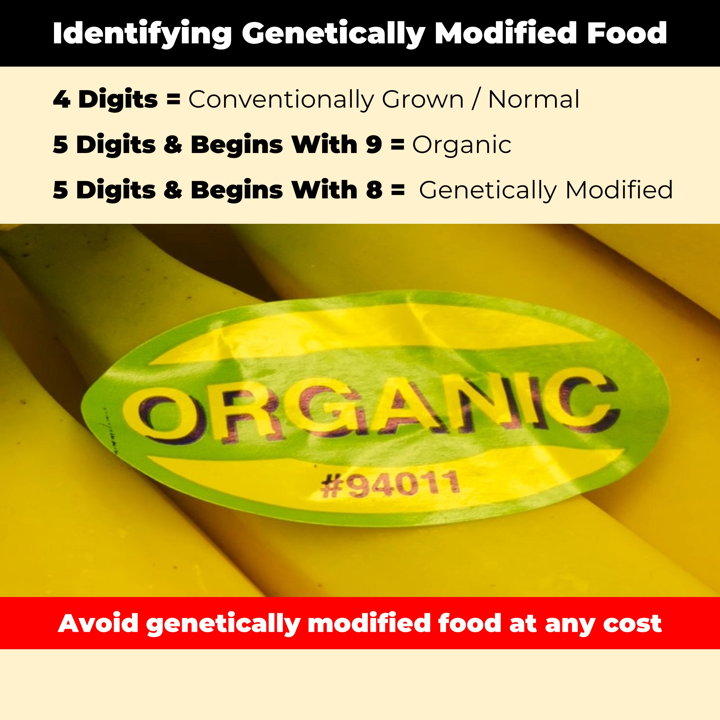 If a product has a 4-digit number, it means the food was conventionally grown i.e. not genetically modified.
