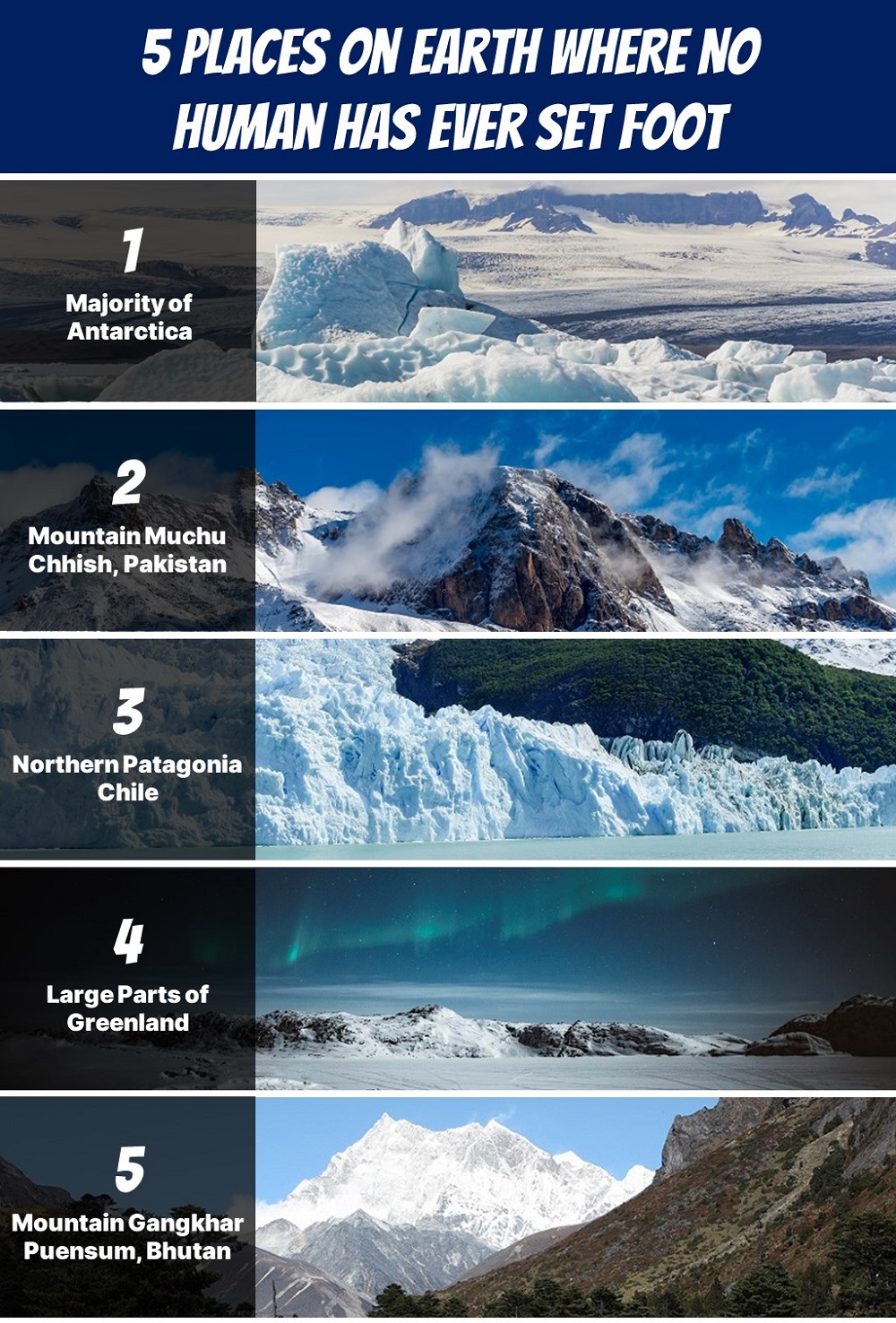 Below are five notable places on earth where no human has ever set foot. This list is not exhaustive and it is only meant to highlight the most recognizable ones.